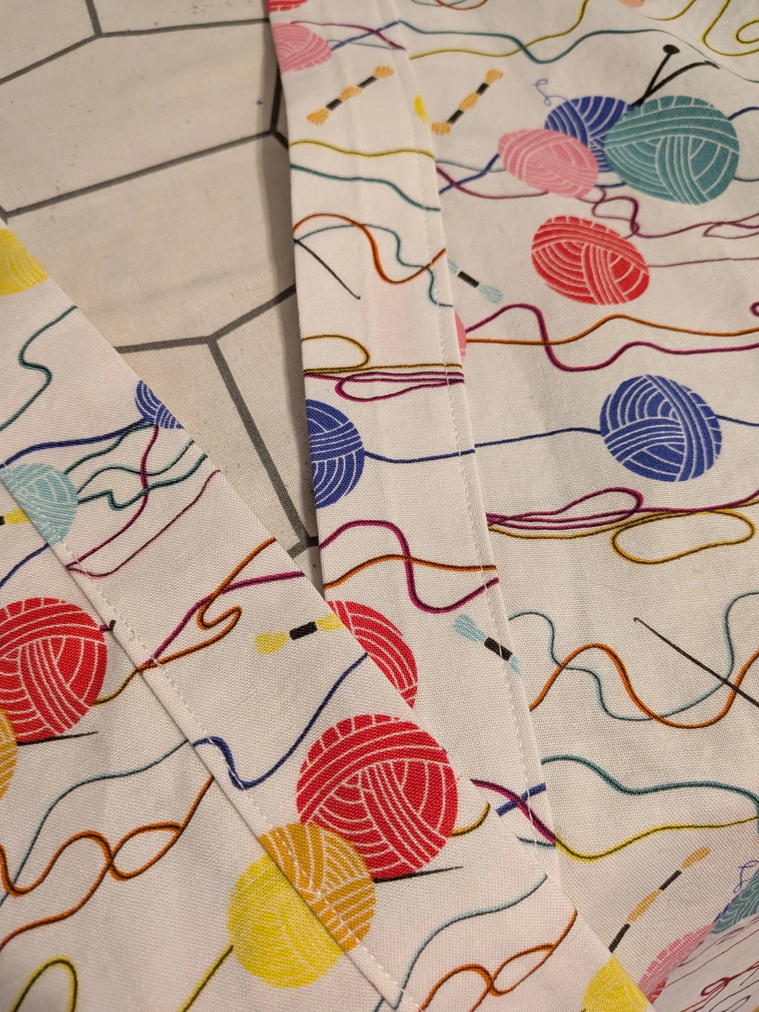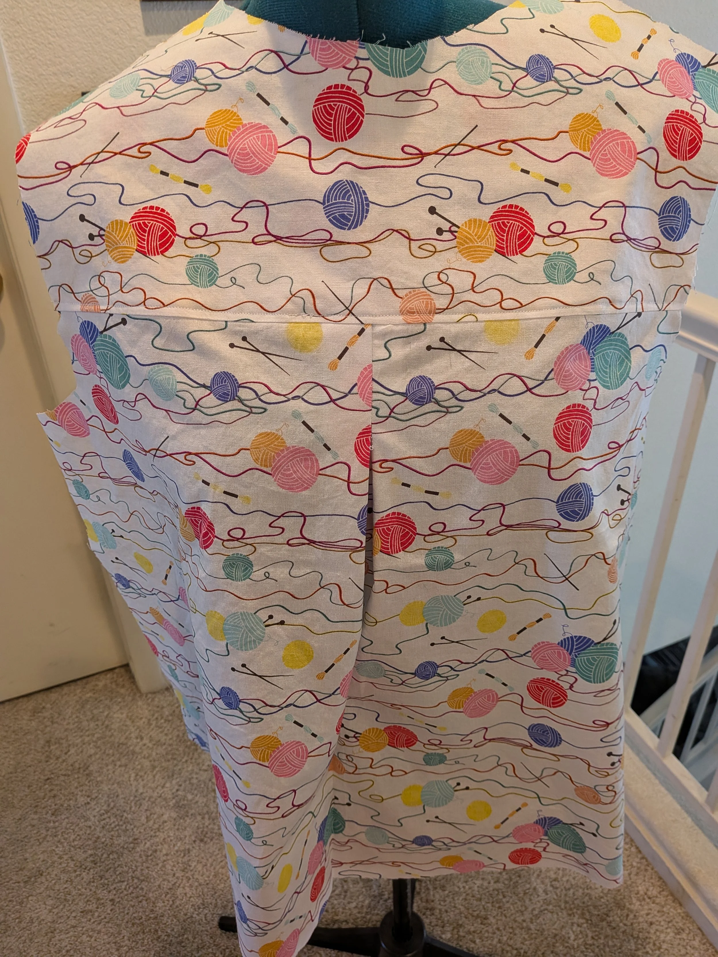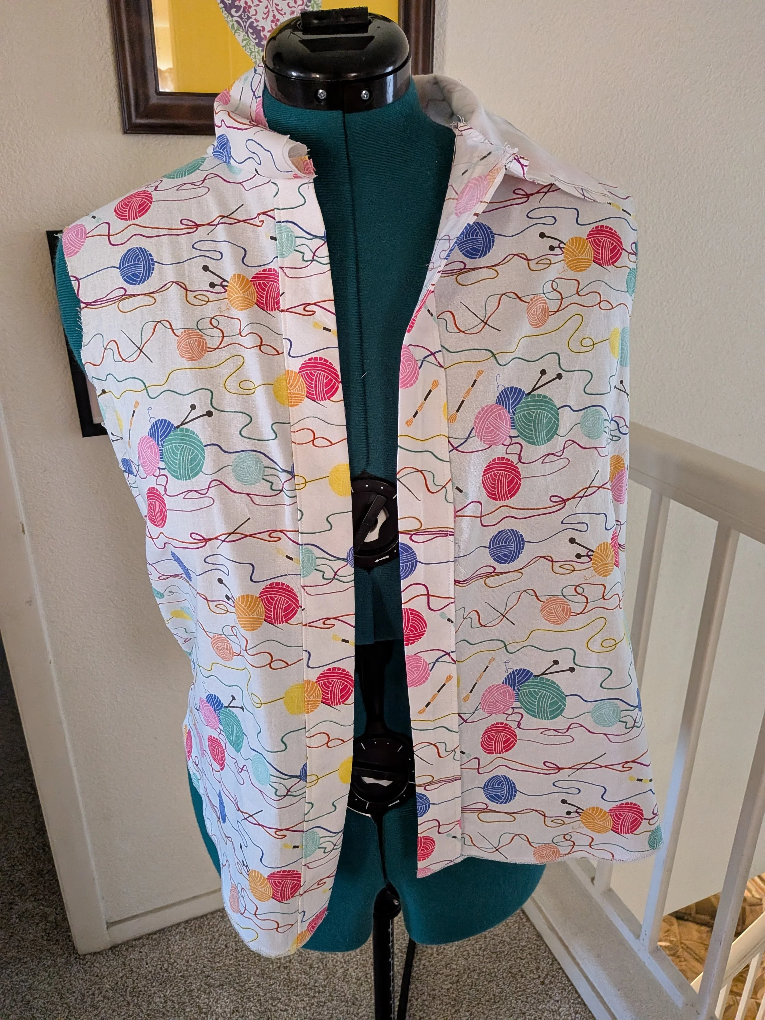 Sewing with wovens seems to take more time than sewing with knits. First of all there is all the pressing that needs to occur. I picked up a few cute project based fabrics when Joanns was going out of business. I found 2 yards of a knitting themed cotton an thought it would make a very cute version of the Love Notions Aria button down shirt.