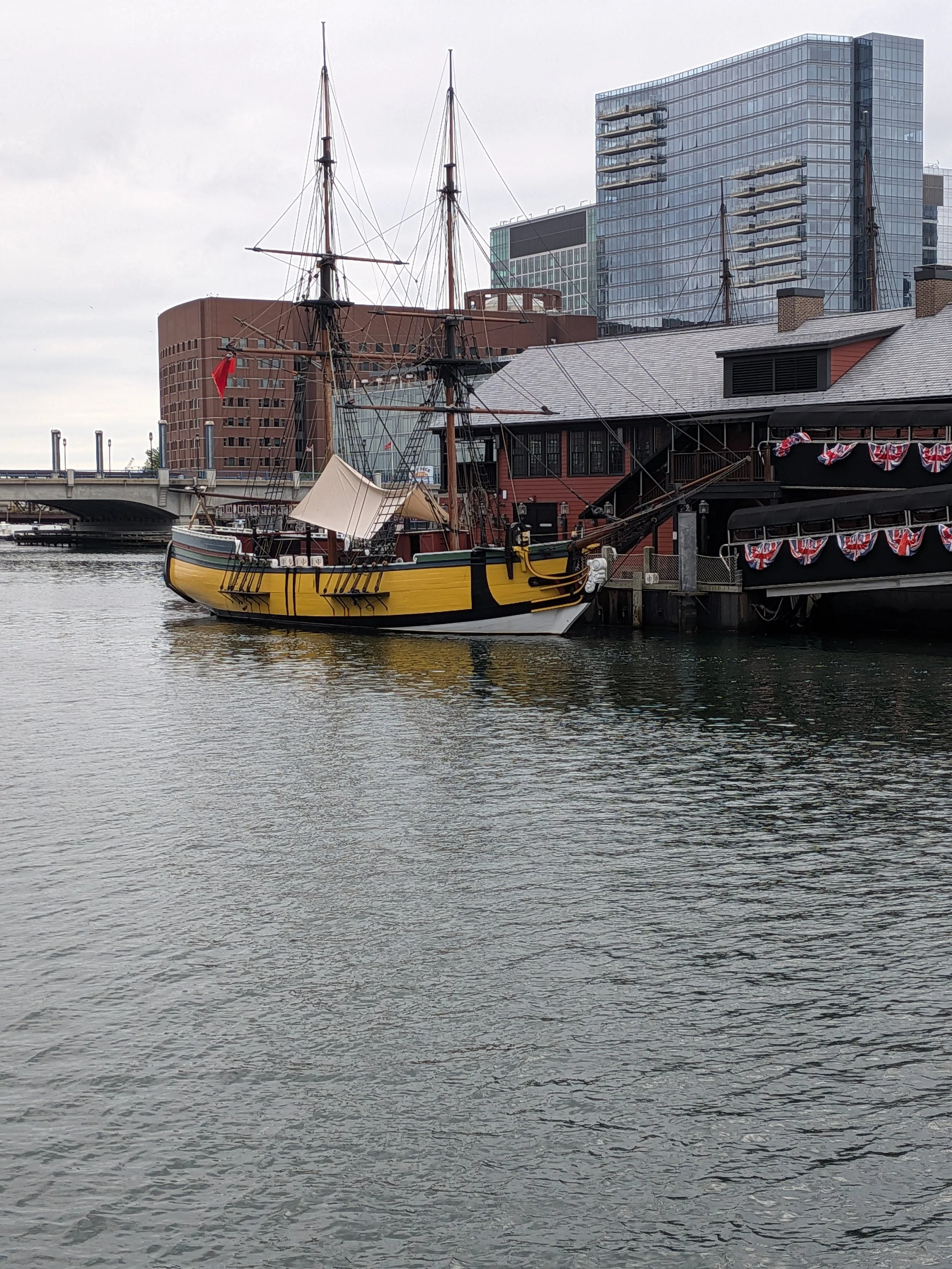 Nuestra siguiente parada fue el Barco y Museo del Motín del Té de Boston. No solo es una visita educativa, sino que lanzar fardos de té por la borda para recrear el Motín del Té de Boston es divertidísimo. El tour también incluyó una parada en el salón de té. Podías comprar una taza de té sin fondo por menos de $5.00. Tenían muestras de todos los tipos de té que se lanzaron durante el motín del té más grande del mundo. Todos estaban deliciosos y fue interesante probar los variados sabores.
