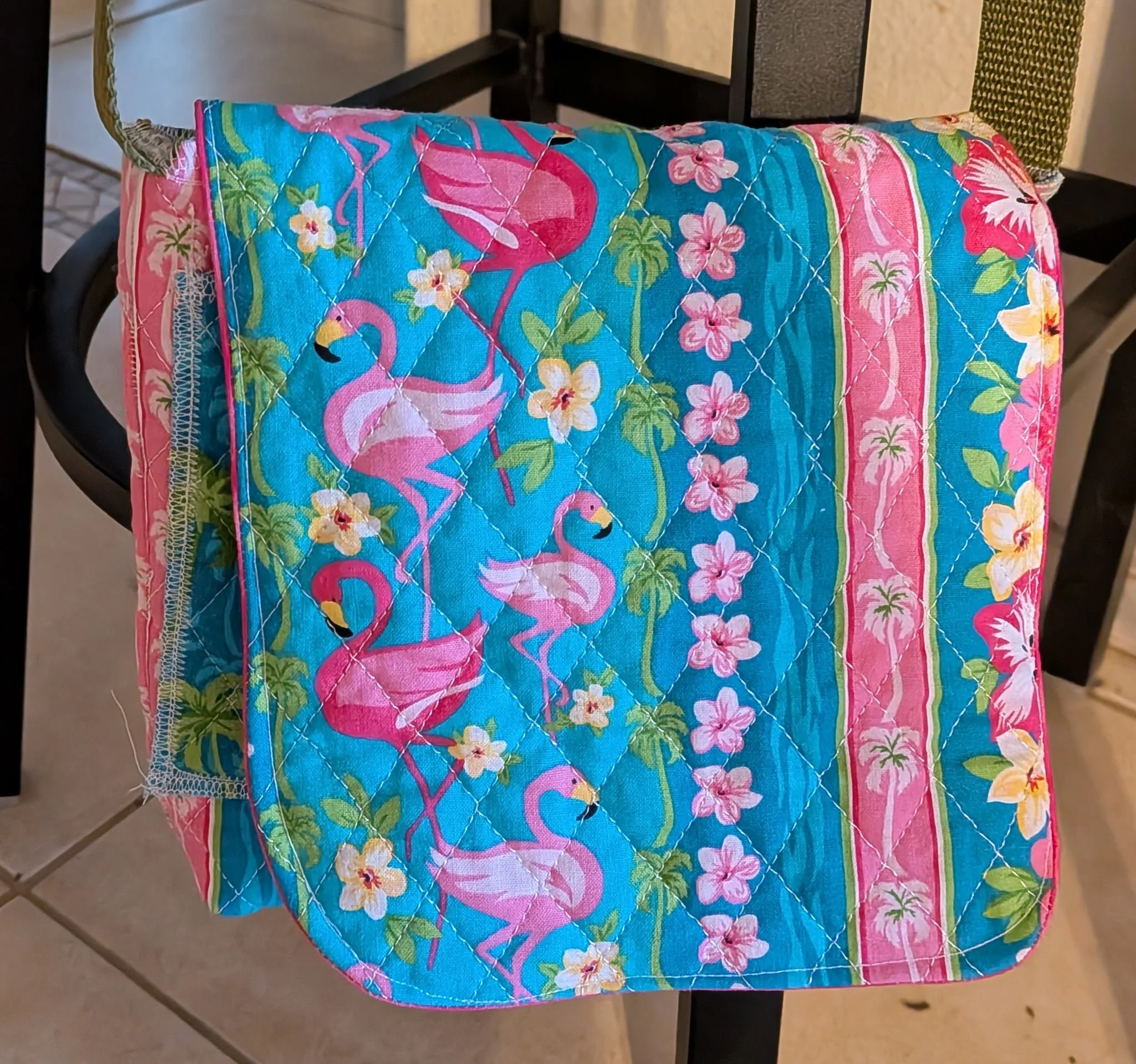 The pattern is quite an easy sew. Once I get back into the production of the bag I find I can finish one in about a hour, not including cutting the pieces. The only “problem” for me is my hatred of turning tubes. I have tried every trick in the sewing book to make turning tubes easier but I have failed at every one. I did try to make the strap with this project but threw it away literally about 1/2 way through the turn. I used webbing I already had in my stash to make my strap. It makes me much happier as a sewer and as a person to use the strap webbing. I also think it might just be sturdier than a fabric strap.